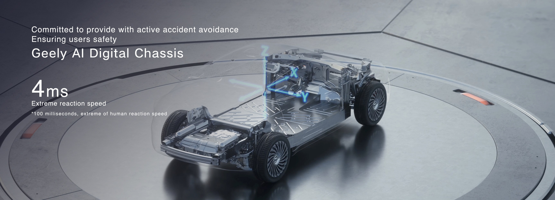 Geelyjeva samorazvijena AI digitalna šasija ističe integraciju vlastite tehnologije šasije, inteligencije, elektrifikacije i velikih AI modela na više područja, što pokazuje vodeće sposobnosti autonomne vožnje i aktivne sigurnosti u industriji. Ova integracija AI velikog modela s digitalnim šasijom omogućuje Geelyjevim vozilima izvođenje svjetskih prvih autonomnih driftova, poboljšavajući inteligentnu sigurnosnu pomoć korisnicima. Geely AI digitalni šasija reagira u samo 4 milisekunde, 25 puta brže od najbrže ljudske reakcije, omogućavajući "automatske izbjegavajuće manevre" u ekstremnim uvjetima i pružajući korisnicima proaktivnu prevenciju nesreća i kontrolu sigurnosti.