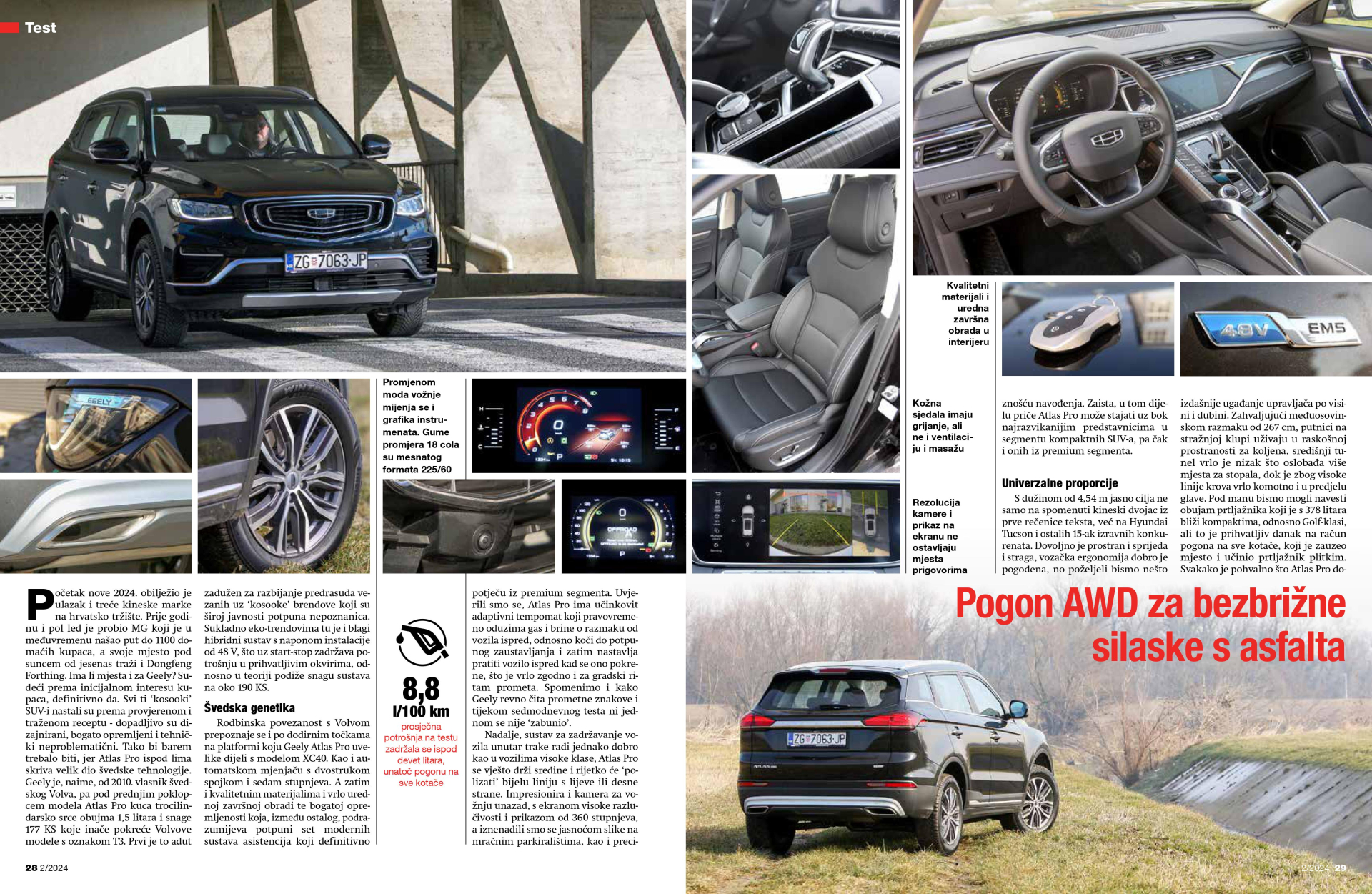 Početak nove 2024. obilježio je ulazak i treće kineske marke na hrvatsko tržište. Prije godinu i pol led je probio MG koji je u međuvremenu našao put do 1100 domaćih kupaca, a svoje mjesto pod suncem od jesenas traži i Dongfeng Forthing. Ima li mjesta i za Geely? Sudeći prema inicijalnom interesu kupaca, definitivno da. Svi ti ‘kosooki’ SUV-i nastali su prema provjerenom i traženom receptu - dopadljivo su dizajnirani, bogato opremljeni i tehnički neproblematični. Tako bi barem trebalo biti, jer Atlas Pro ispod lima skriva velik dio švedske tehnologije.
